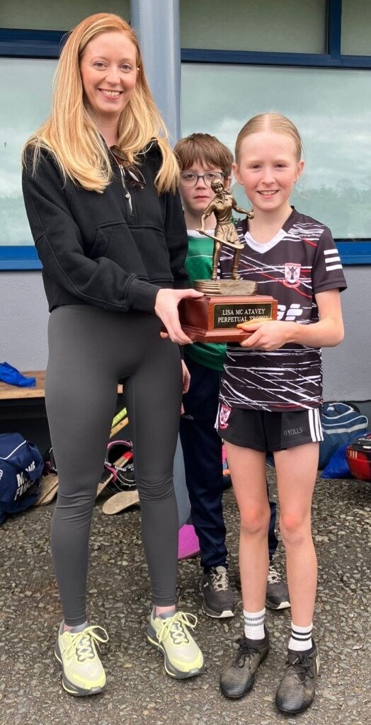 Congratulations to our friends in St John’s Ps Middletown who won the Lisa McAtavey Camogie Cup today. A great day of camogie was enjoyed by all our visiting schools. Many thanks to Mrs Gollogly for organising a great day and to all those who helped out in any way, especially to our two referees Adele and Caoimhe. Special thanks to Lily and Donnacha for coming along to present the trophy. It is always a pleasure to catch up with the McAtavey Family.