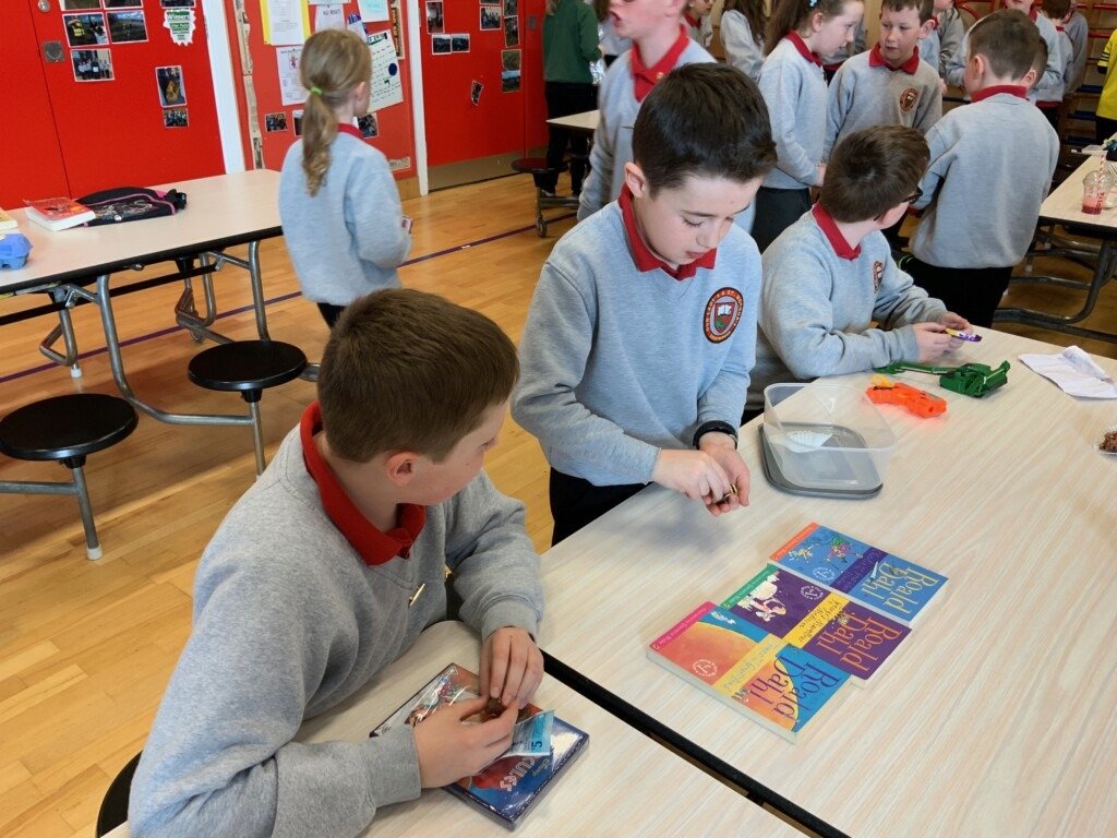 As part of our Shared Education Programme with Clontibret National School our school company ‘Oakers’ Enterprise’ have produced an Easter Product called Sweet Pots. The children had to design their product, completing market research and working as a team to agree ideas. This lead to the children producing a power point presentation which they presented to our three dragons in a Dragons Den Play Off. The winning product was then mass produced by the children as below with all proceeds going to charity!! Great work by all.
