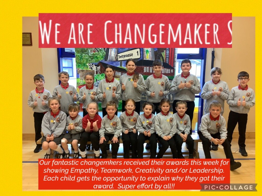Congratulations to this week’s Changemakers, selected for showing empathy, teamwork, creativity and leadership. Congratulations also to this weeks fantastic Show and Tell (Outside School Achievements)