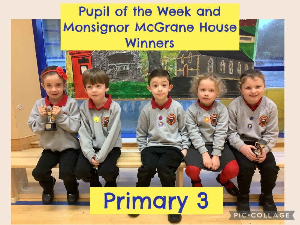 Congratulations to our Pupil of the Week (Cup Holders) and Monsignor McGrane House Point Winners.